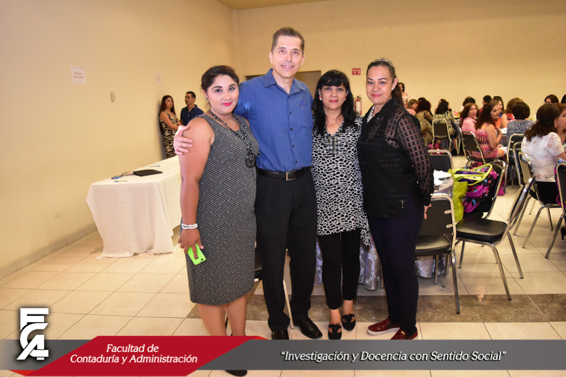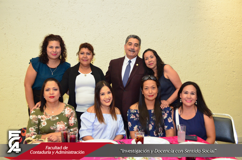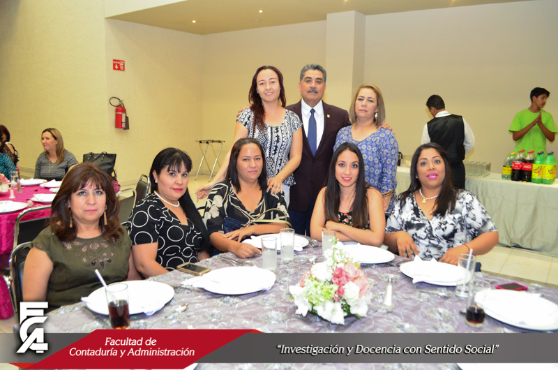 Con una amena comida, el día 9 de mayo del presente año, la Facultad de Contaduría y Administración festejó la labor que realizan sus empleadas para mantener las funciones universitarias y a la vez conservar los valores que permiten la unión de las familias chihuahuenses. El evento fue presidido por el M.F. Luis Raúl Sánchez Acosta, Director de la FCA, quien a su vez estuvo acompañado de la Dra. Carmen Romelia Flores Morales, Secretaria de Planeación y Desarrollo Institucional; el M.A.R.H. Ramón Torres Medina, Secretario Académico; el M.S.I. Marcelino Fraire Rodríguez; Secretario de Extensión y Difusión Cultural; el M.A. Servando Salcido Garza, Secretario Administrativo; y el Dr. Juan Óscar Ollivier Fierro, Secretario de Investigación y Posgrado.