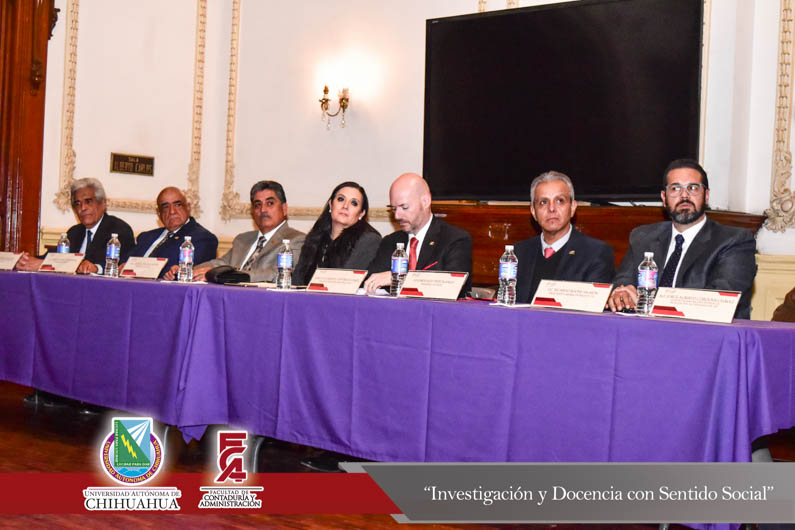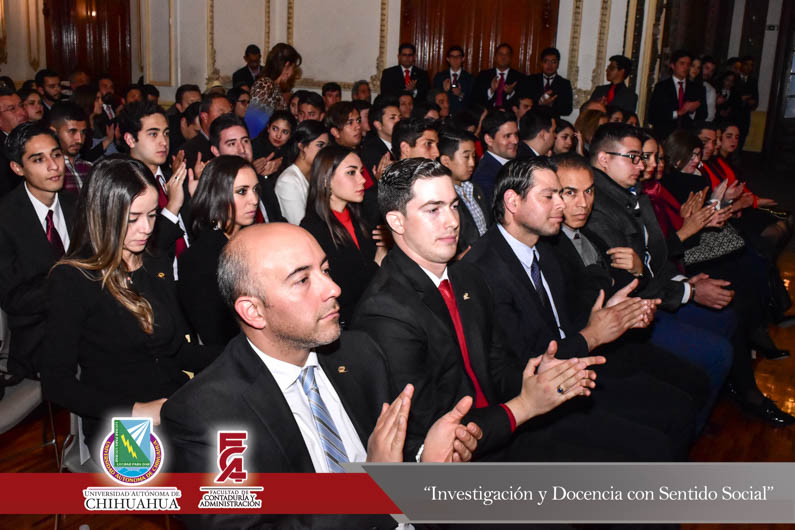 El pasado 30 de enero, en el Centro Cultural Universitario Quinta Gameros se llevó a cabo la toma de protesta a la nueva mesa directiva del Instituto Mexicano de Ejecutivos de Finanzas I.M.E.F. Chihuahua 2018, evento que contó con la presencia del M.F. Luis Raúl Sánchez Acosta, Director de Facultad de Contaduría y Administración en representación del M.E. Luis Alberto Fierro Ramírez, Rector de la Universidad Autónoma de Chihuahua, la C.P.C. Patricia Terrazas Baca, Directora General de Ingresos de la Secretaría de Hacienda en representación del Lic. Javier Corral Jurado, Gobernador Constitucional del Estado de Chihuahua, el Ing. José Manuel Contreras Lomelí, Vicepresidente Nacional del I.M.E.F., el C.P. Jorge Julio Ortíz Blanco, Presidente saliente del I.M.E.F., el M.F. Carlos Rafael Grado Salayandia, Presidente entrante, el L.E. Luis Pedro Uranga Rohana, Presidente del Colegio de Economía, el Lic. Ricardo Boone Salmón, Presidente de la Cámara de Radio y T.V., el M.E. Jorge Alberto Córdova Chávez, Administrador desconcentrado de recaudación de Chihuahua del S.A.T, así como las mesas directivas del I.M.E.F. Universitario de la U.A.CH., I.T.E.S.M. y la U.L.SA.