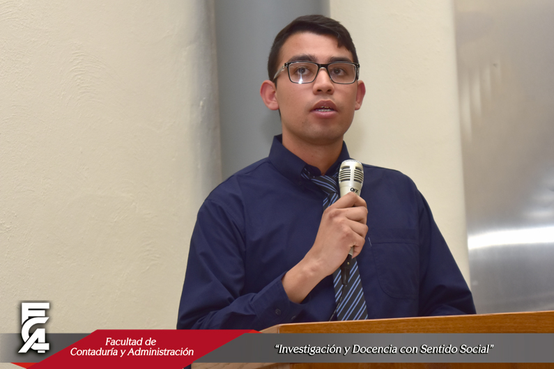 El C.P.C. Jesús Pedro Rodríguez Estrada en su mensaje mencionó “para nosotros es un placer estar en este programa ya que cada semestre que lo hacemos, realizamos la invitación al alumno con mejor promedio del 8vo. semestre a colaborar con nosotros. Es grato reconocer a los alumnos que se distinguen por su dedicación, empeño y esfuerzo” por otra parte, el alumno Martín Salazar Ontiveros, en representación de los estudiantes de la FCA expresó ”responsabilidad significa control, es la diferencia entre dirigir y ser conducido, cada estudiante elige entre realizar su mejor esfuerzo para lograr ser el mejor o conformarse con el esfuerzo mínimo que conlleva a la mediocridad, compañeros siéntanse orgullosos de este gran logro”.