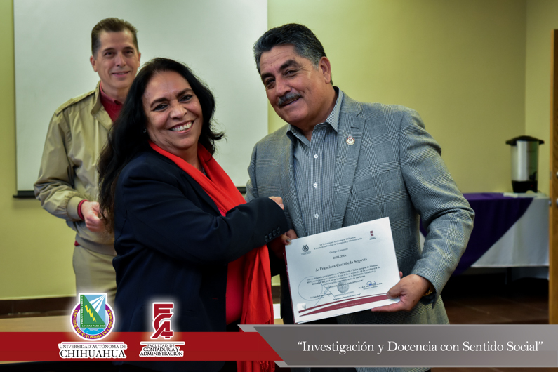 Por dicho motivo se llevó a cabo la entrega de constancias de participación en donde estuvo presente el Director de la Facultad de Contaduría y Administración, el M.F. Luis Raúl Sánchez Acosta, en compañía de la Dra. Carmen Romelia Flores Morales, Secretaria de Planeación y Desarrollo Institucional y el M.A.R.H. Ramón Torres Medina, Secretario Académico.