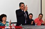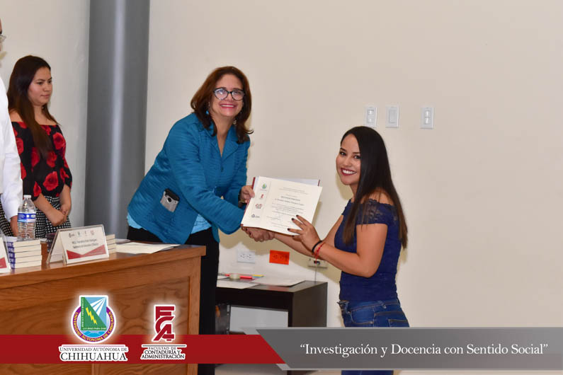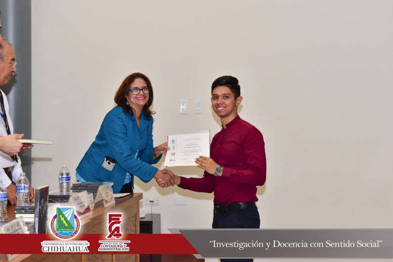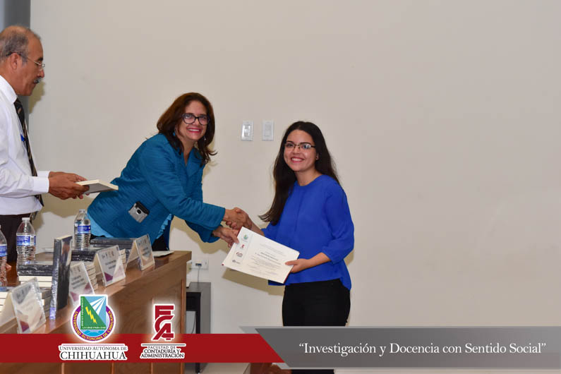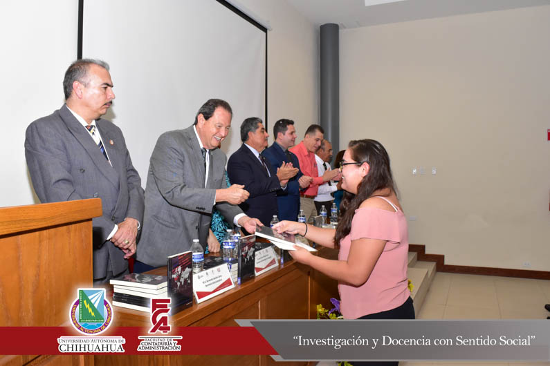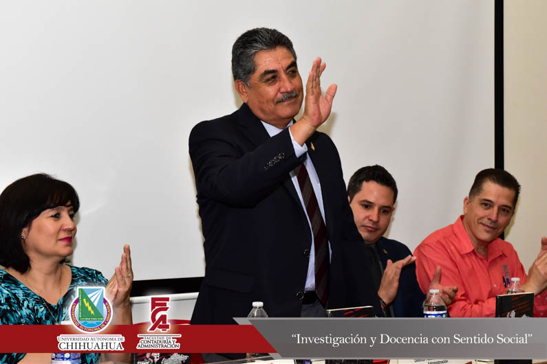 El presídium estuvo integrado por el M.F. Luis Raúl Sánchez Acosta, Director de la Facultad de Contaduría y Administración, la Dra. Carmen Romelia Flores Morales, Secretaria de Planeación y Desarrollo Institucional, el Dr. Juan Óscar Ollivier Fierro, Secretario de Investigación y Posgrado, el M.S.I. Marcelino Fraire Rodríguez, Secretario de Extensión y Difusión, el M.A. Servando Salcido Garza, Secretario Administrativo, el M.A.R.H. Ramón Torres Medina, Secretario Académico y el C.P.C. Rodolfo Landa Parra, Presidente del Instituto y Colegio de Contadores Públicos de Chihuahua, A.C.