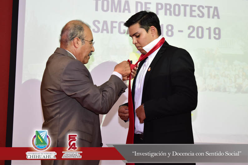 La sesión fue encabezada por el M.S.I. Marcelino Fraire Rodríguez, Secretario de Extensión y Difusión Cultural, en representación del M.F. Luis Raúl Sánchez Acosta, Director de la Facultad, el M.I. Germán Pérez Hernández, Coordinador General de Extensiones de la Facultad, la M.A. Hermilia Mata Carrasco, Coordinadora de la F.C.A. Extensión Delicias, la C. Clarisa Alejandra Guardiola Márquez, Presidente saliente de la Sociedad de Alumnos de la F.C.A. periodo 2017 – 2018 y el C. Jesús Montoya Sánchez, Presidente entrante de SAFCA Extensión Delicias.