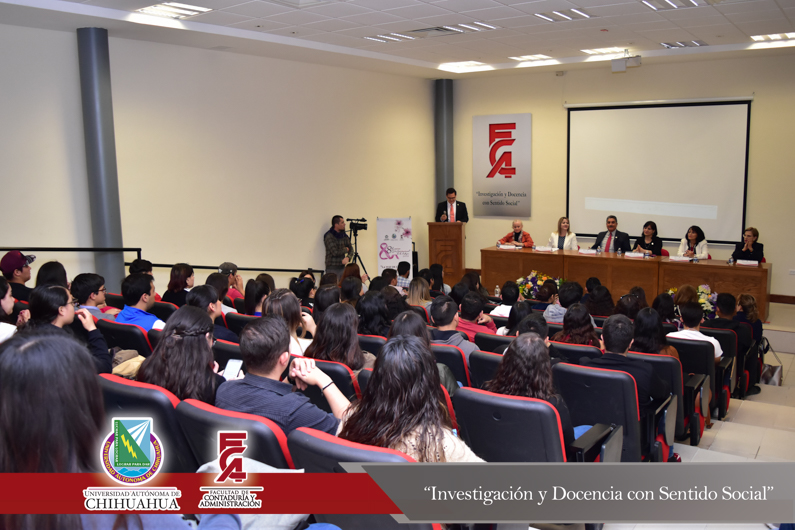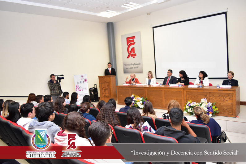 La Facultad conmemoró este día con una mesa panel en el Auditorio Académico, la cual estuvo conformada por la Dra. Carmen Romelia Flores Morales; Secretaria de Planeación y Desarrollo Institucional y por las docentes de la Facultad, la Dra. María del Carmen Gutiérrez Díez, la Dra. Xóchitl Bustillos Varela, la Dra. Myrna Isela García Bencomo y la M.A.R.H. Liliana Álvarez Loya, además, se contó con la presencia del M.F. Luis Raúl Sánchez Acosta, Director de la Facultad de Contaduría y Administración.